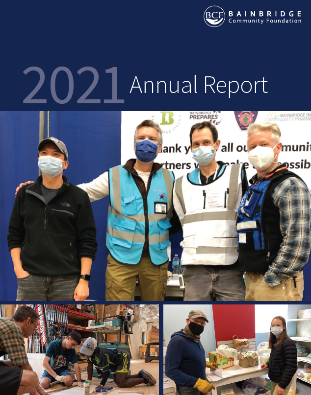 Learn more about Bainbridge Community Foundation through our annual reports and grants reports. Jump to the bottom of this page for 990s. If you're looking for other information, let us know.