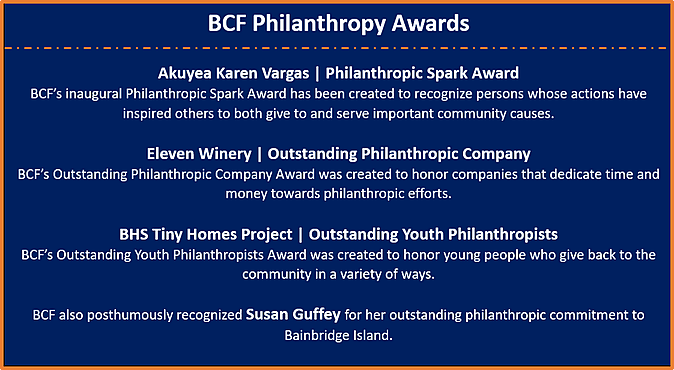 BCF was honored to recognize four individuals and groups this year, all of whom have expressed their love of humanity through their philanthropy.